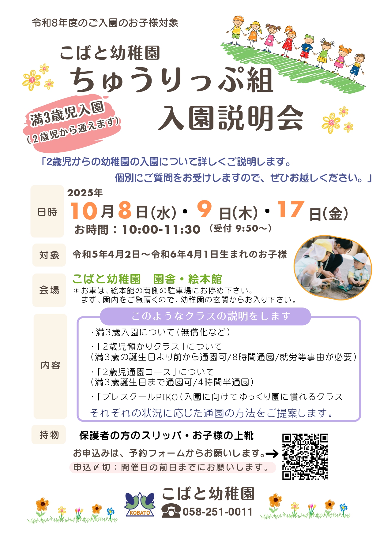 2歳児(満3歳児)クラス入園説明会のご案内