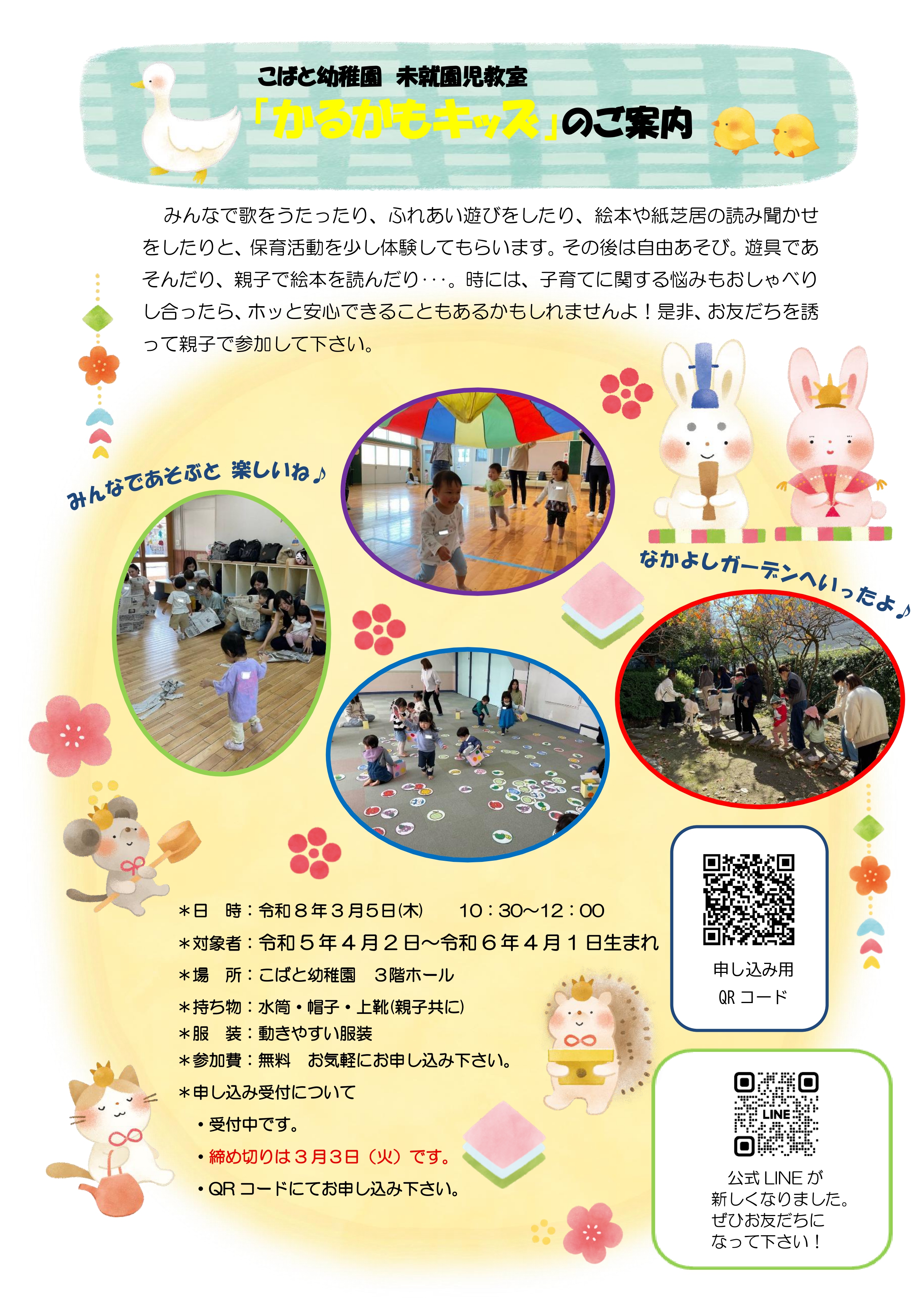 3月も、未就園児のお子さまに楽しんでいただける活動をたくさん予定しております。