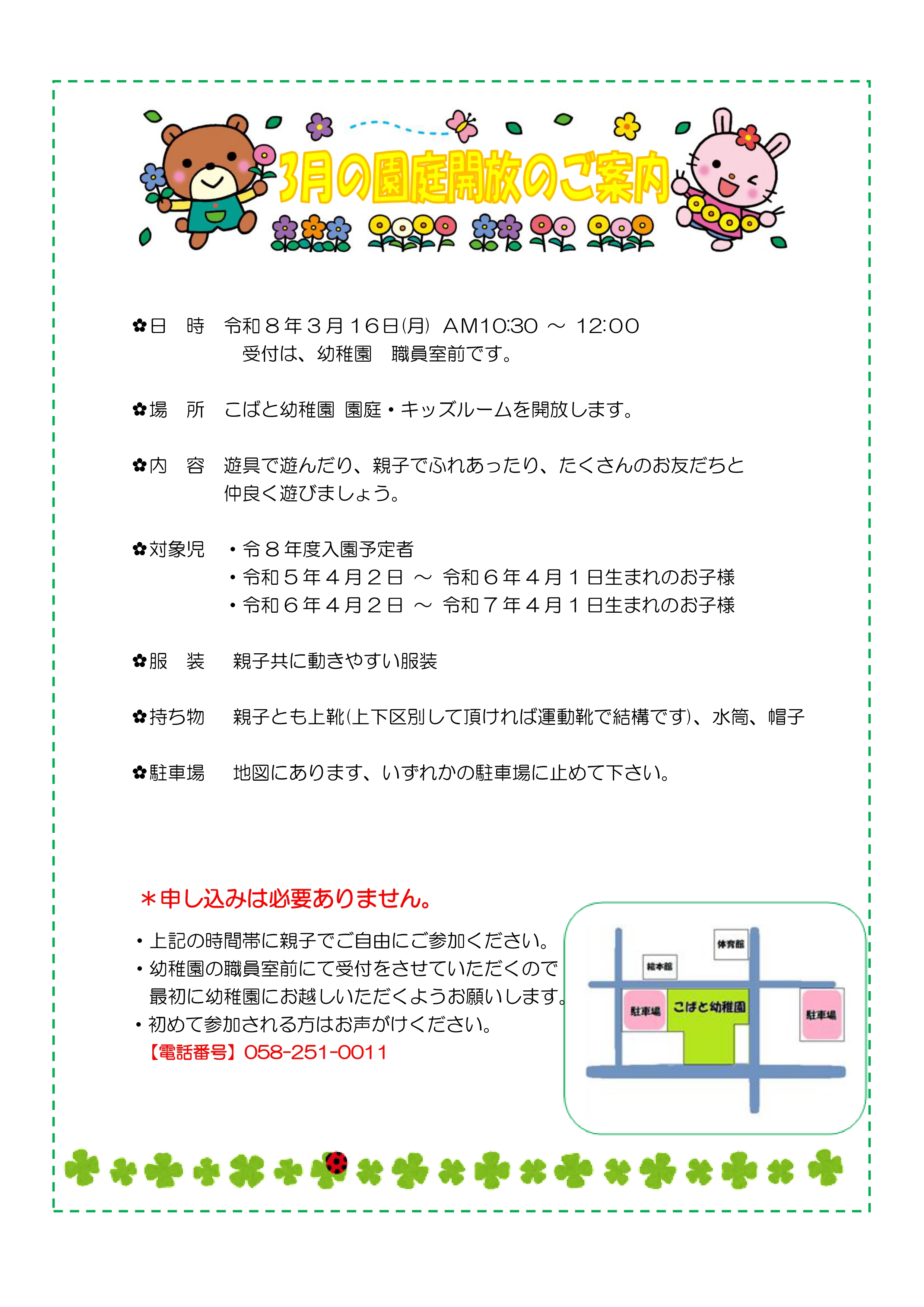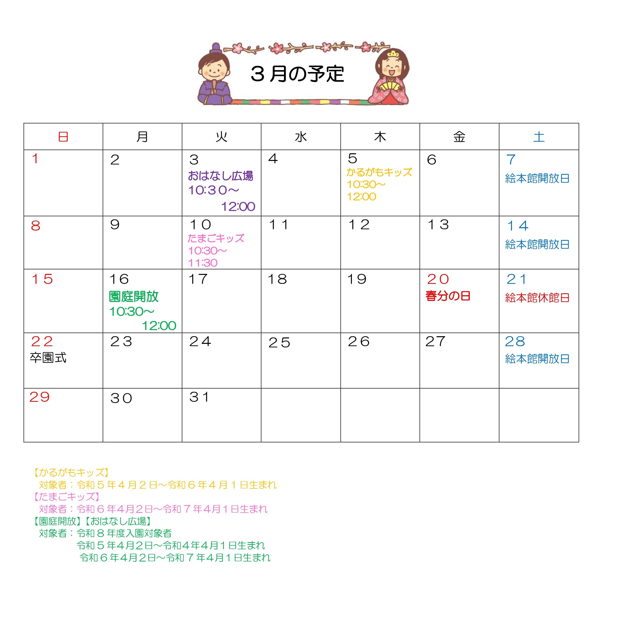 【未就園児】 3月のご案内