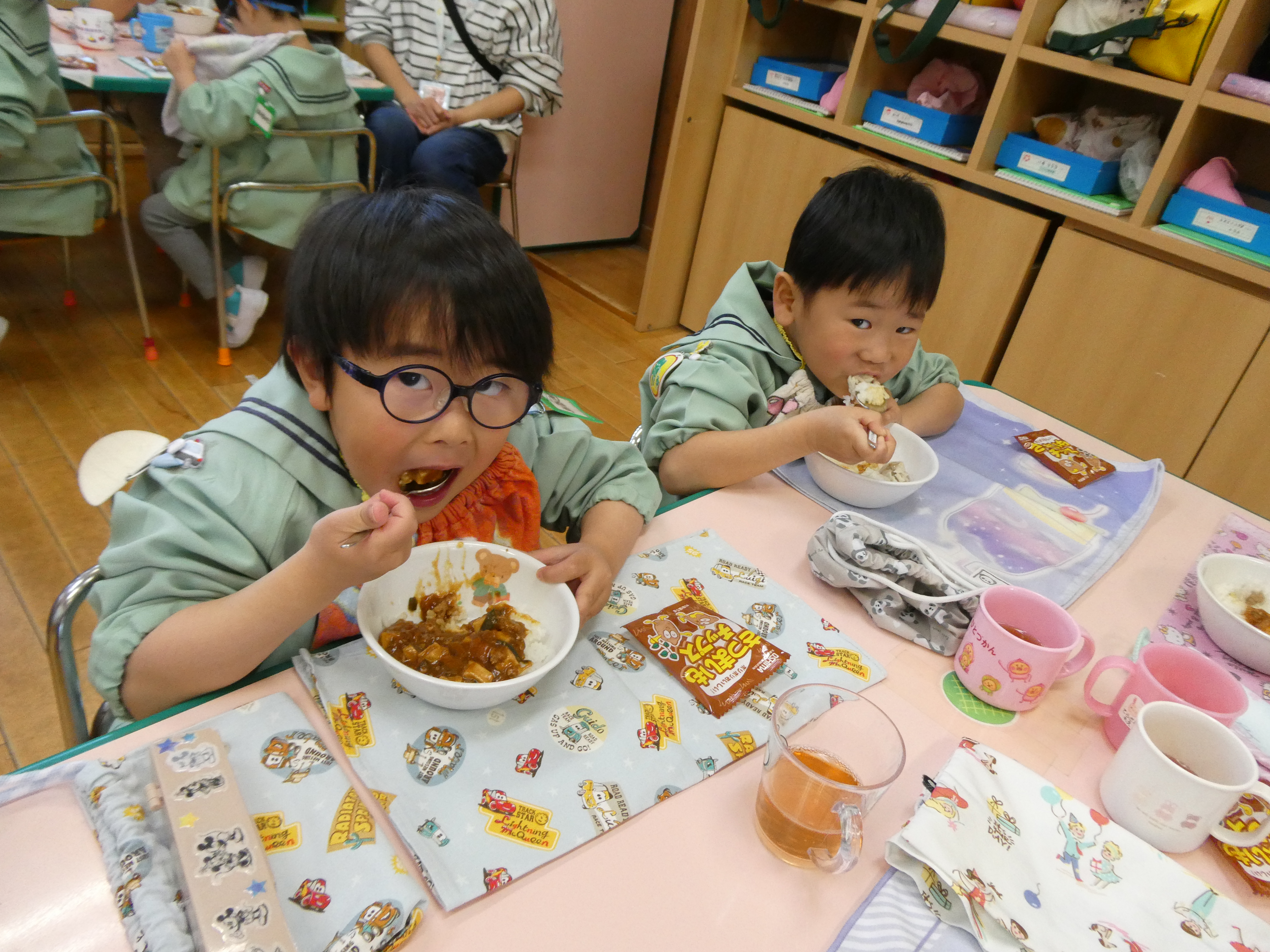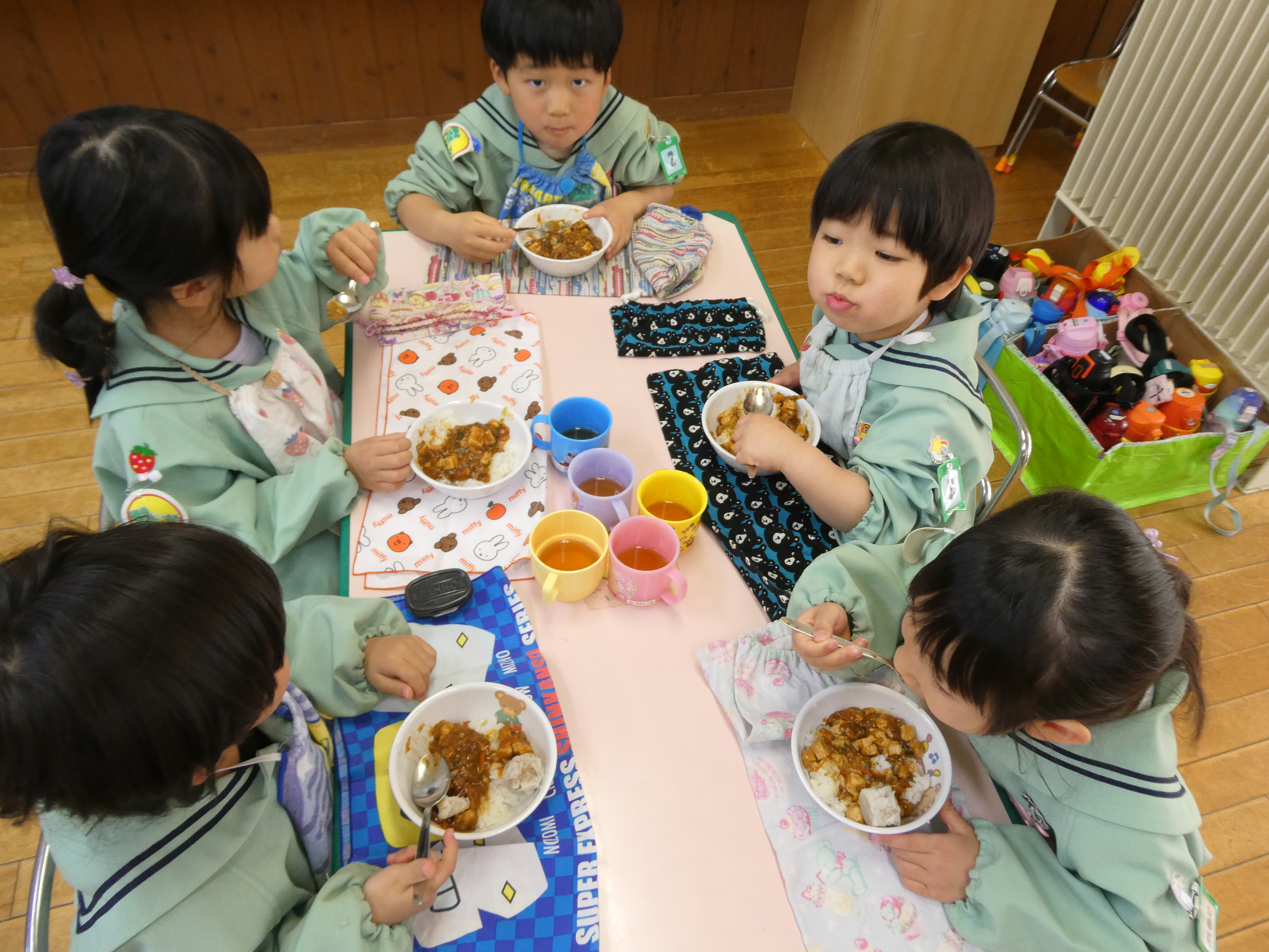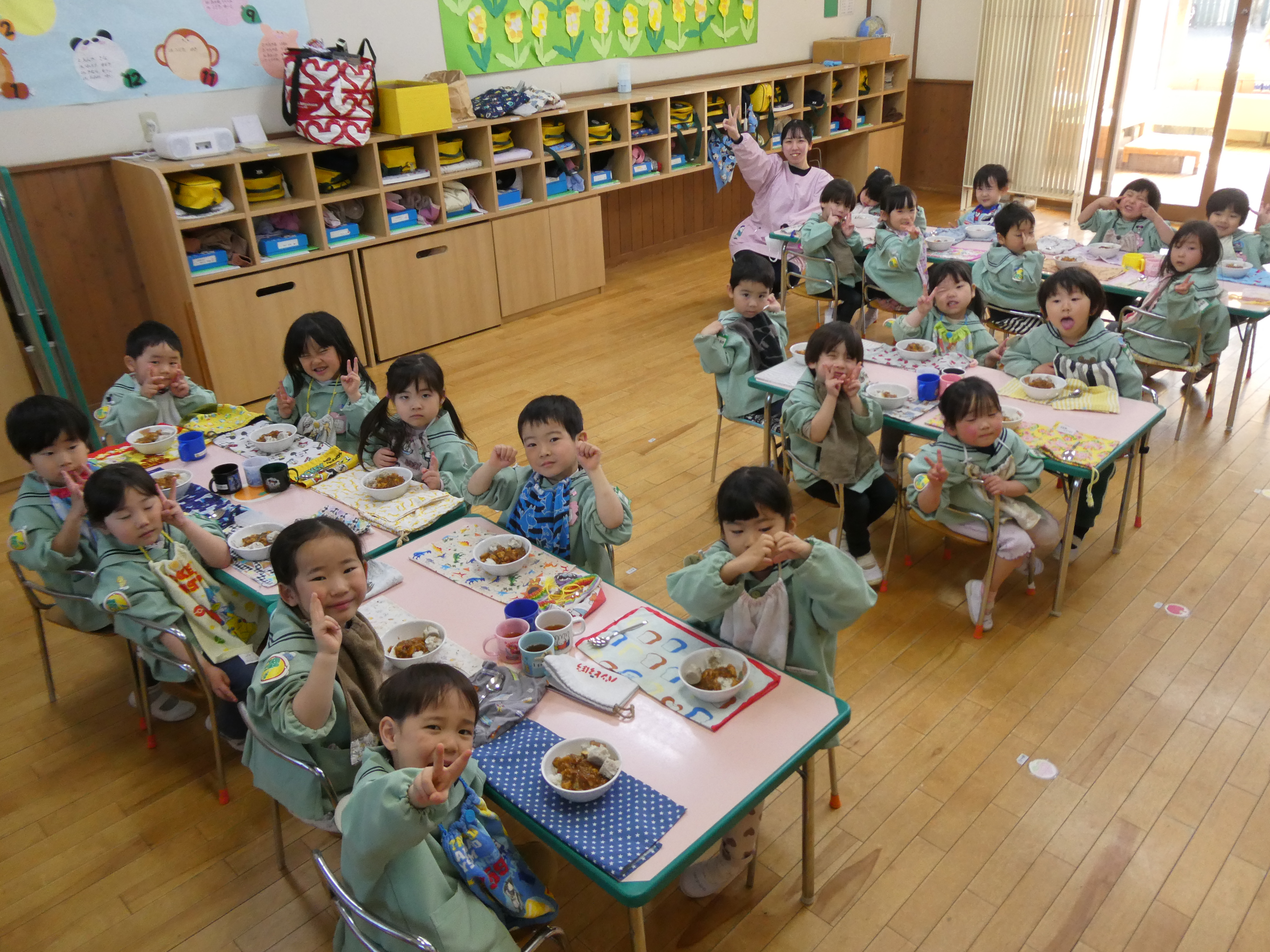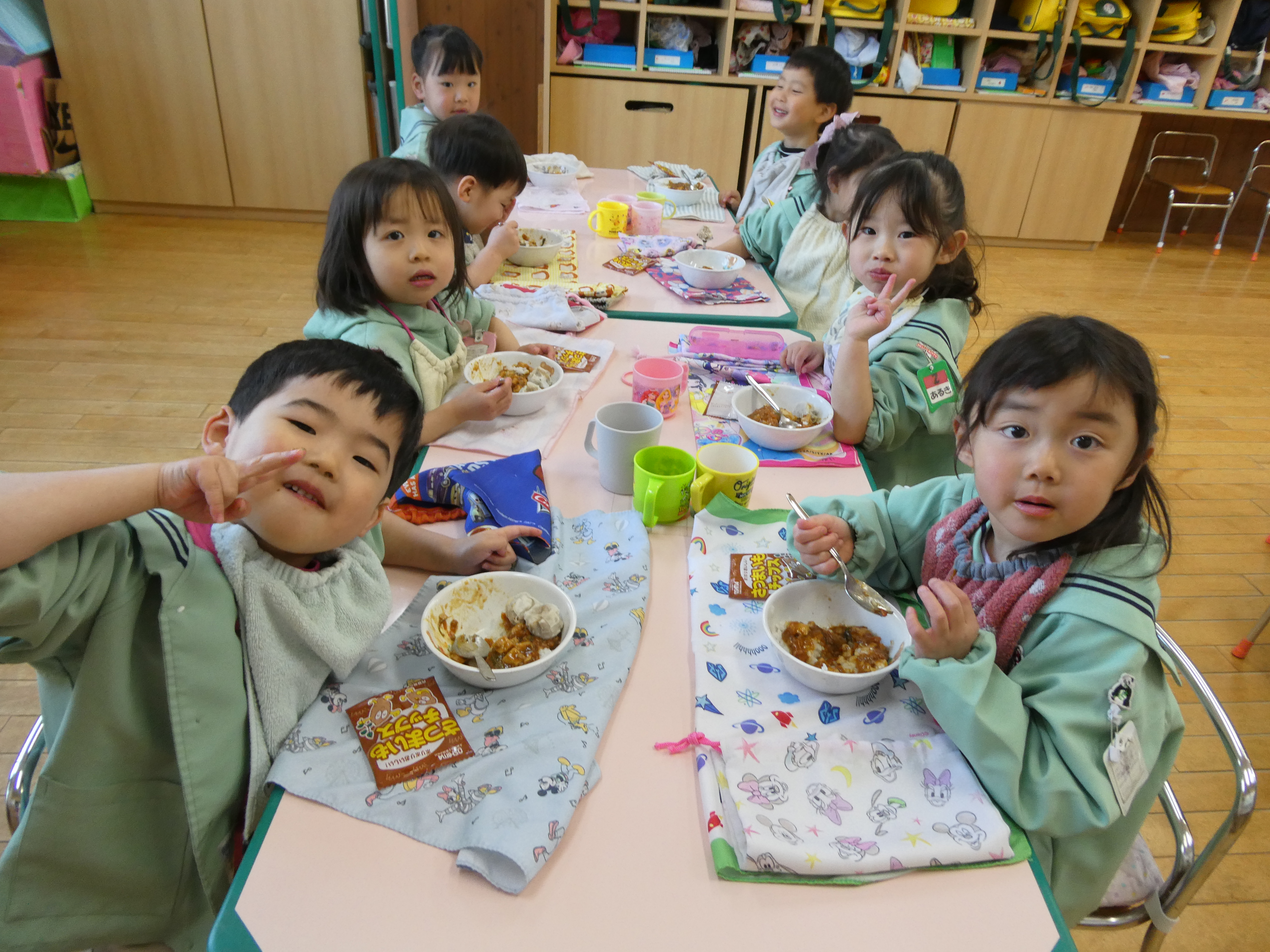 「今日のお給食なにー?」「ぼくこれ大好きー!」と毎日の給食の時間をとても楽しみにしているもも組さん。