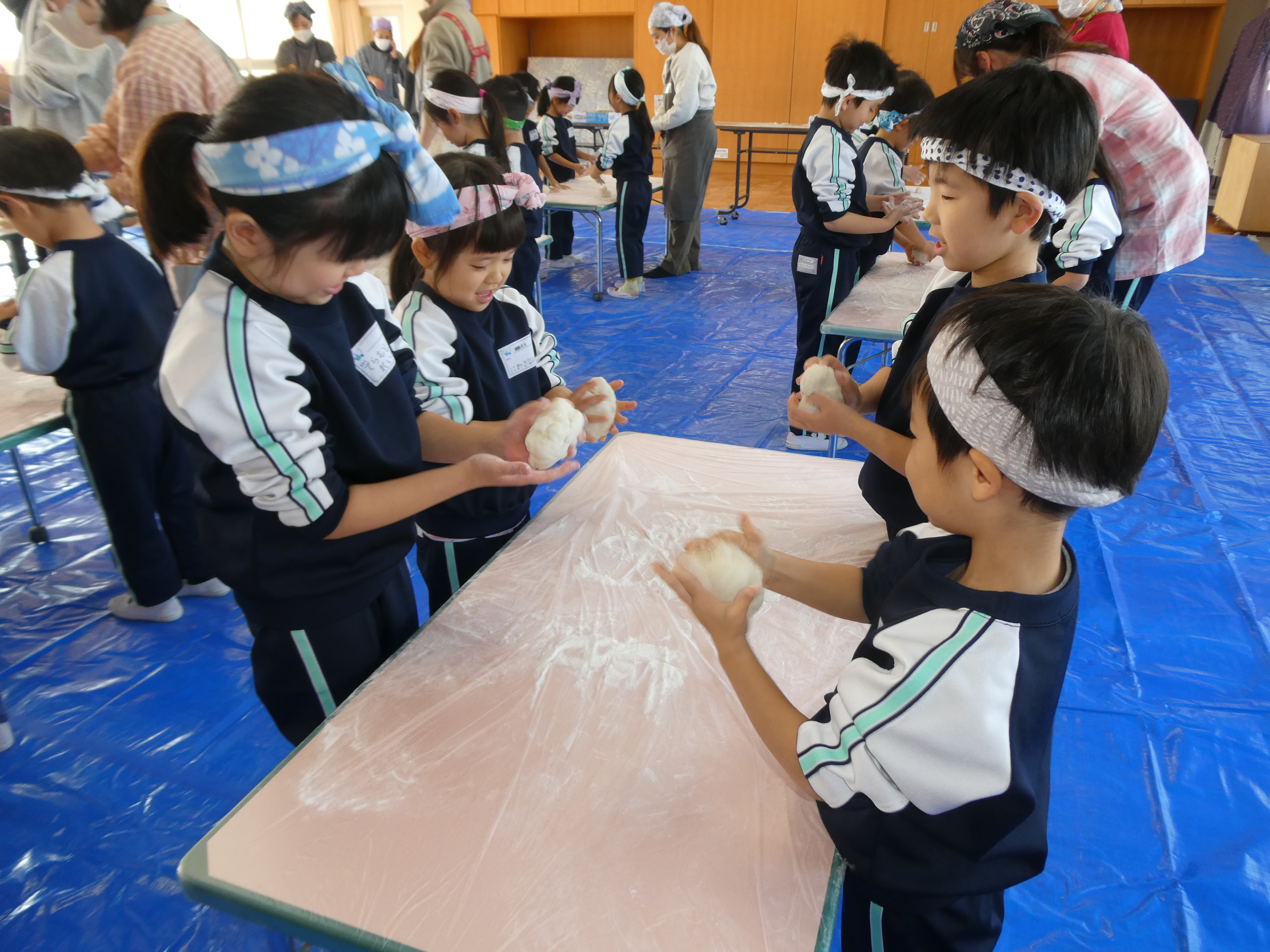 出来上がったお供え餅は、自分たちのクラスだけでなく他学年のクラスにも届けました。