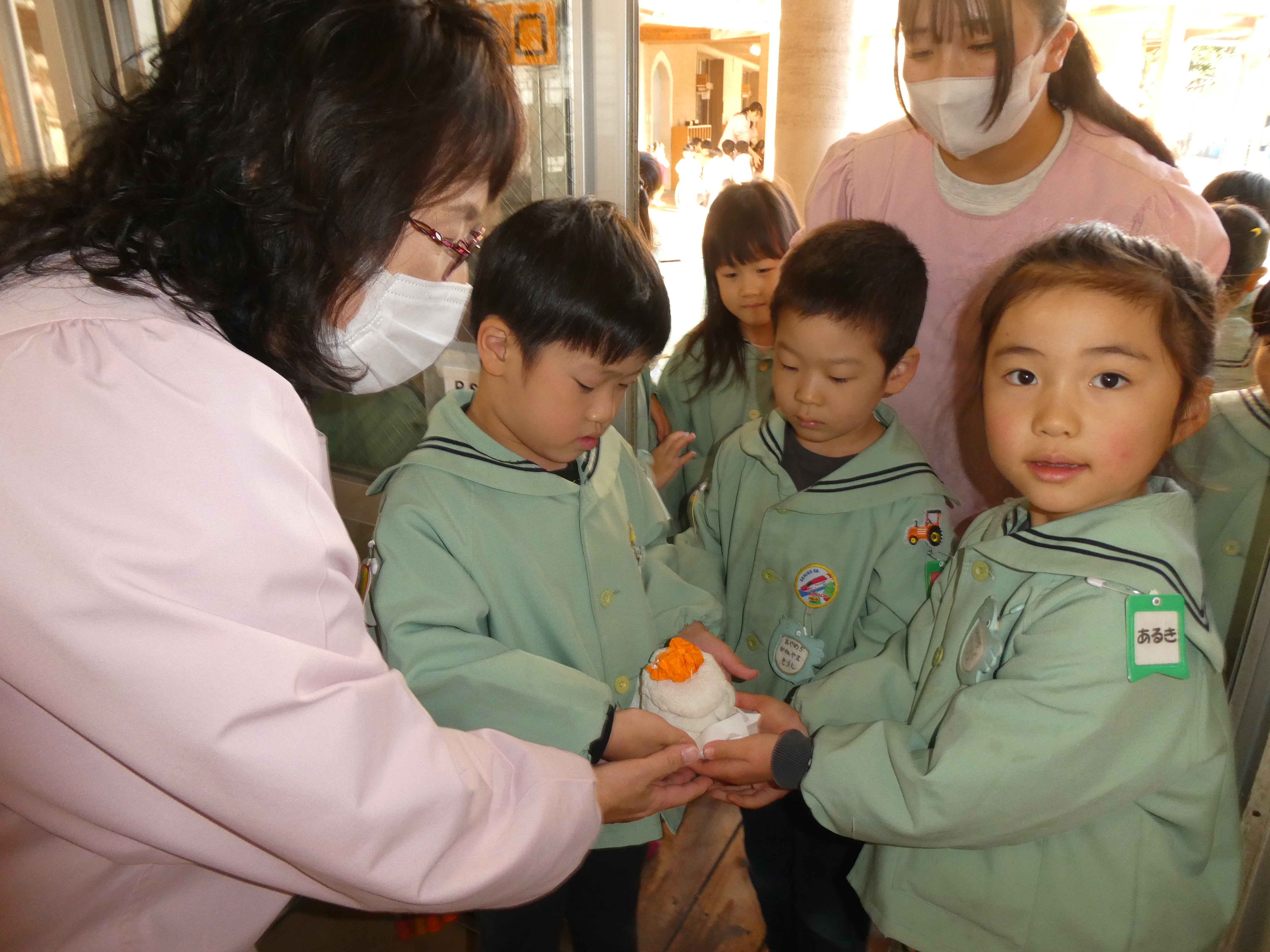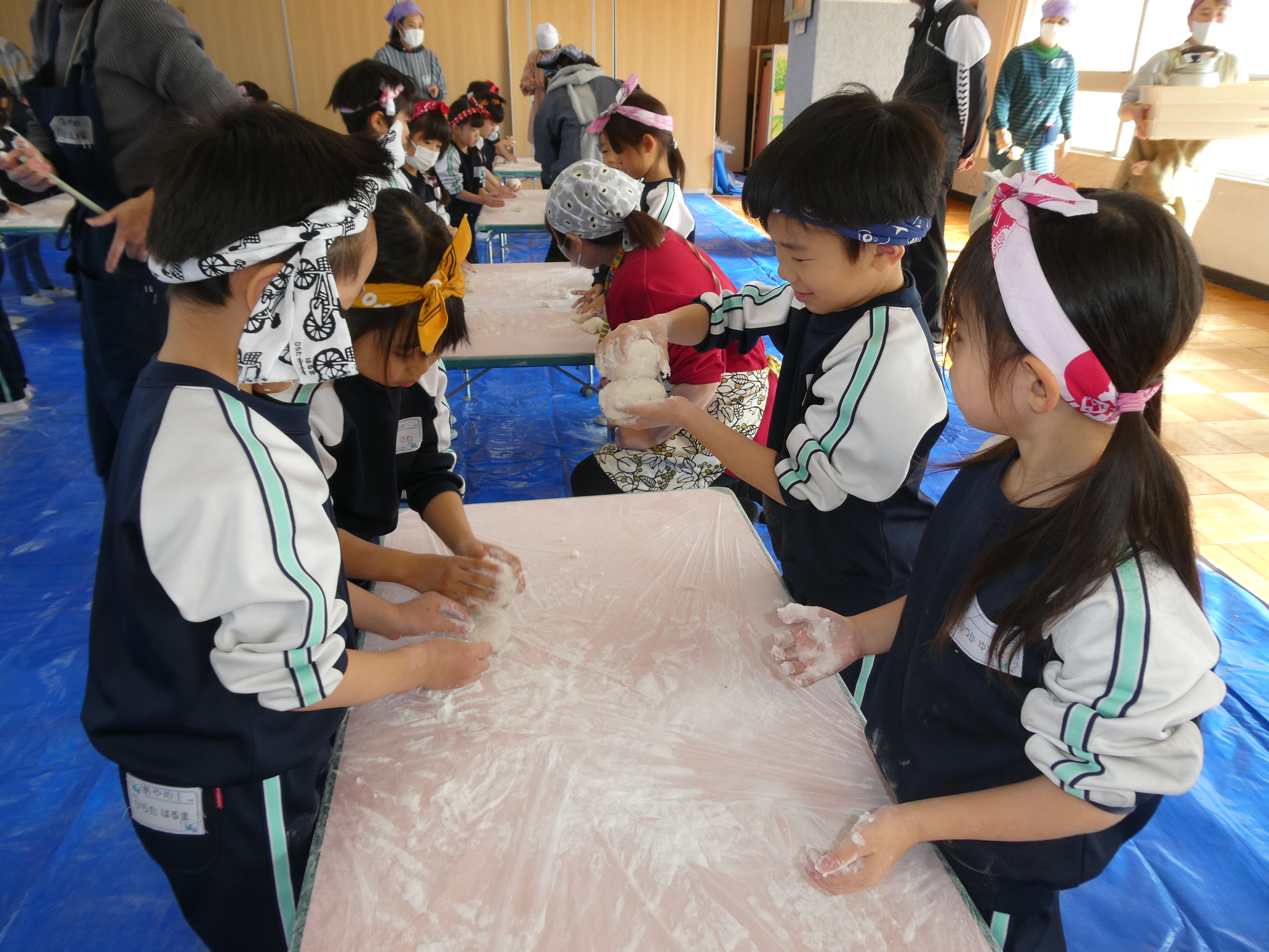 子どもたちが自分の手で作ったお供え餅が教室の、ののさまの近くに飾られると「ののさま食べるかなー!」「上手に出来たね!」と友達と話す子ども達でした!