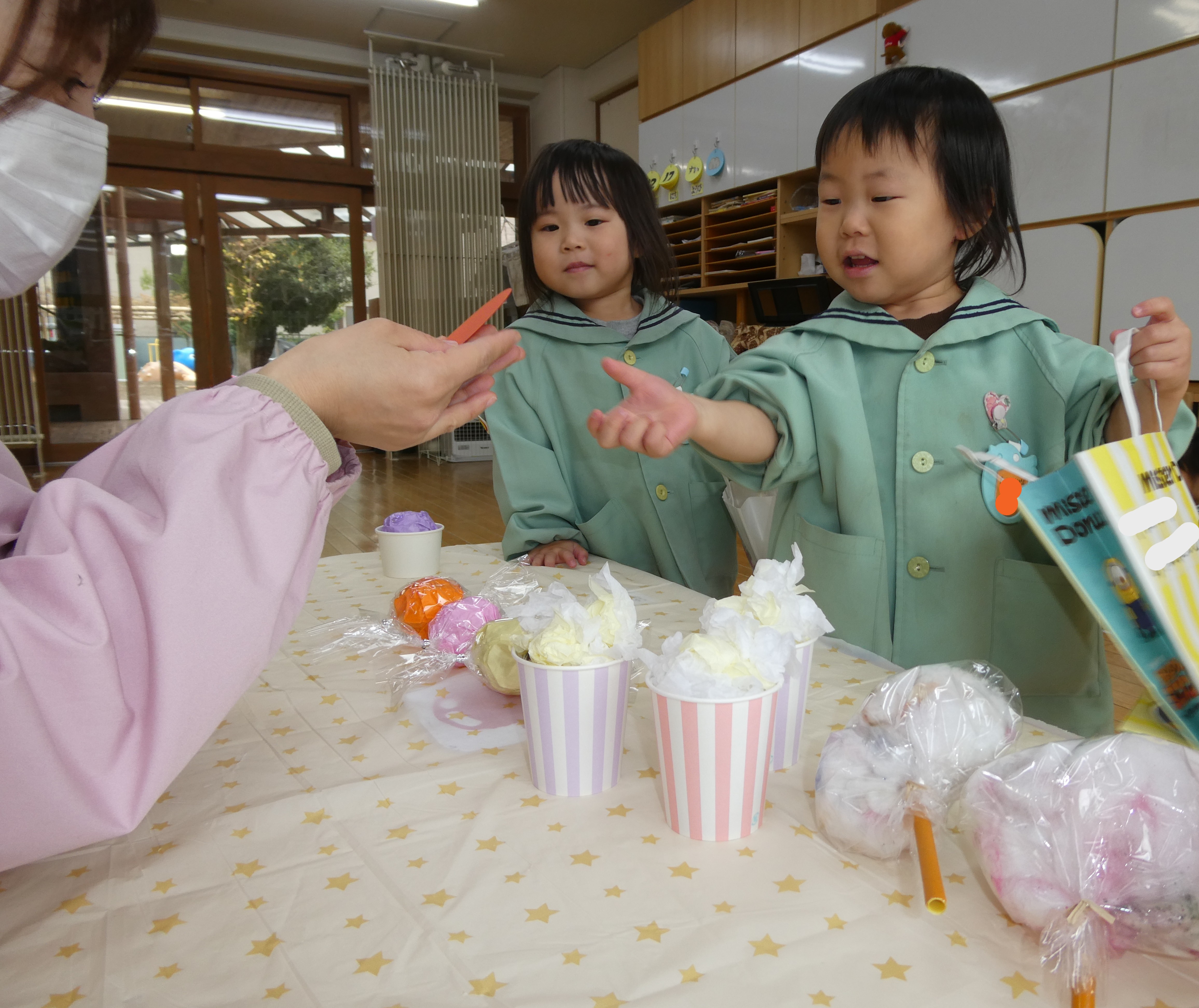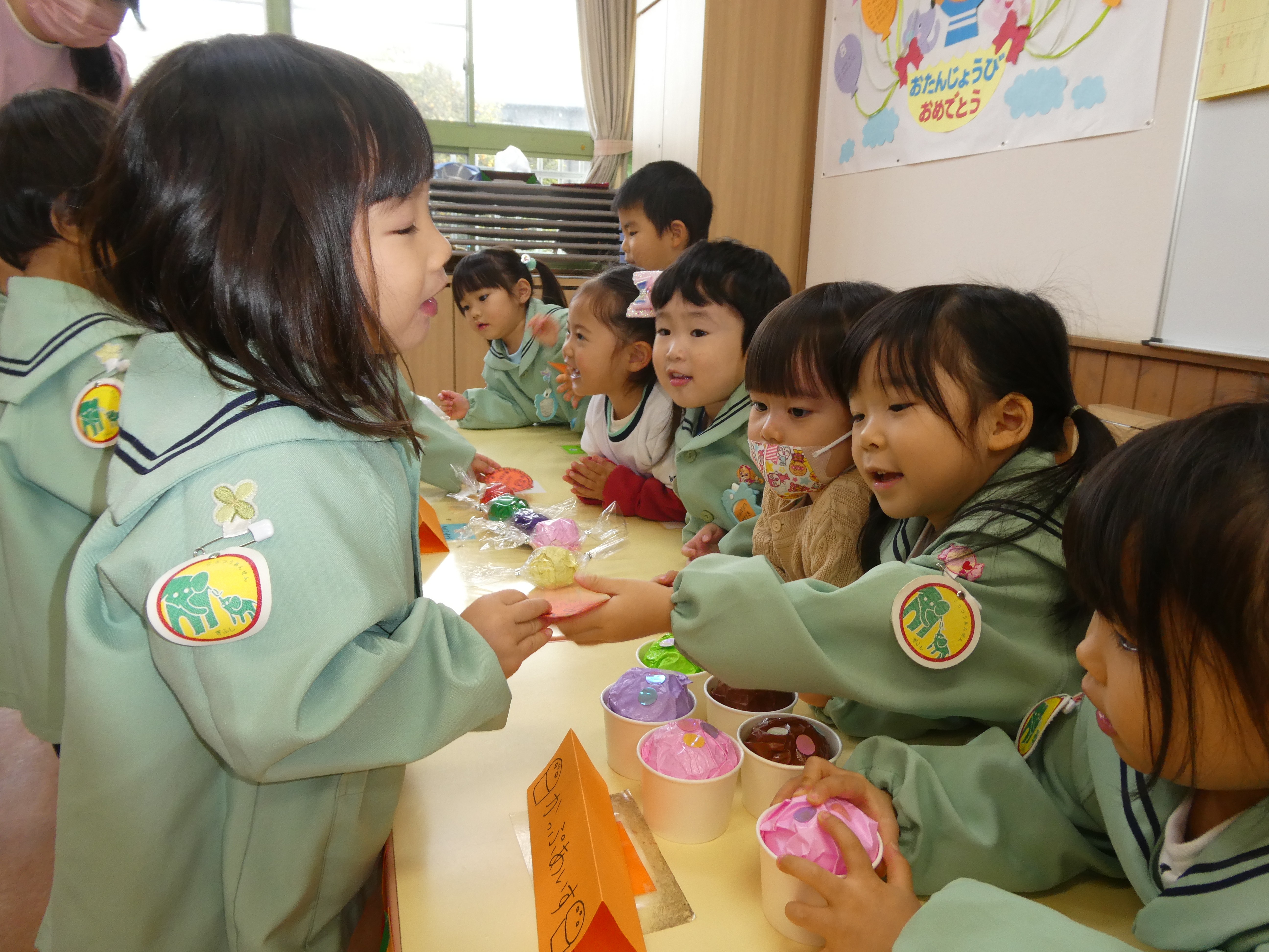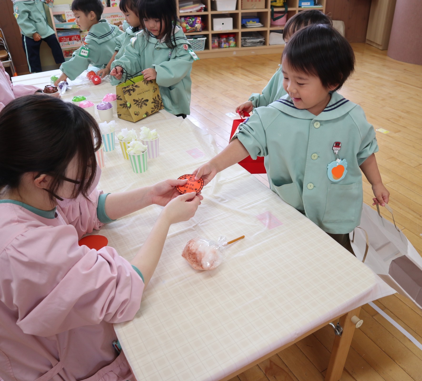 次は、子ども達が店員さん役になってお客さんの子ども達とのやり取りを楽しみました。
