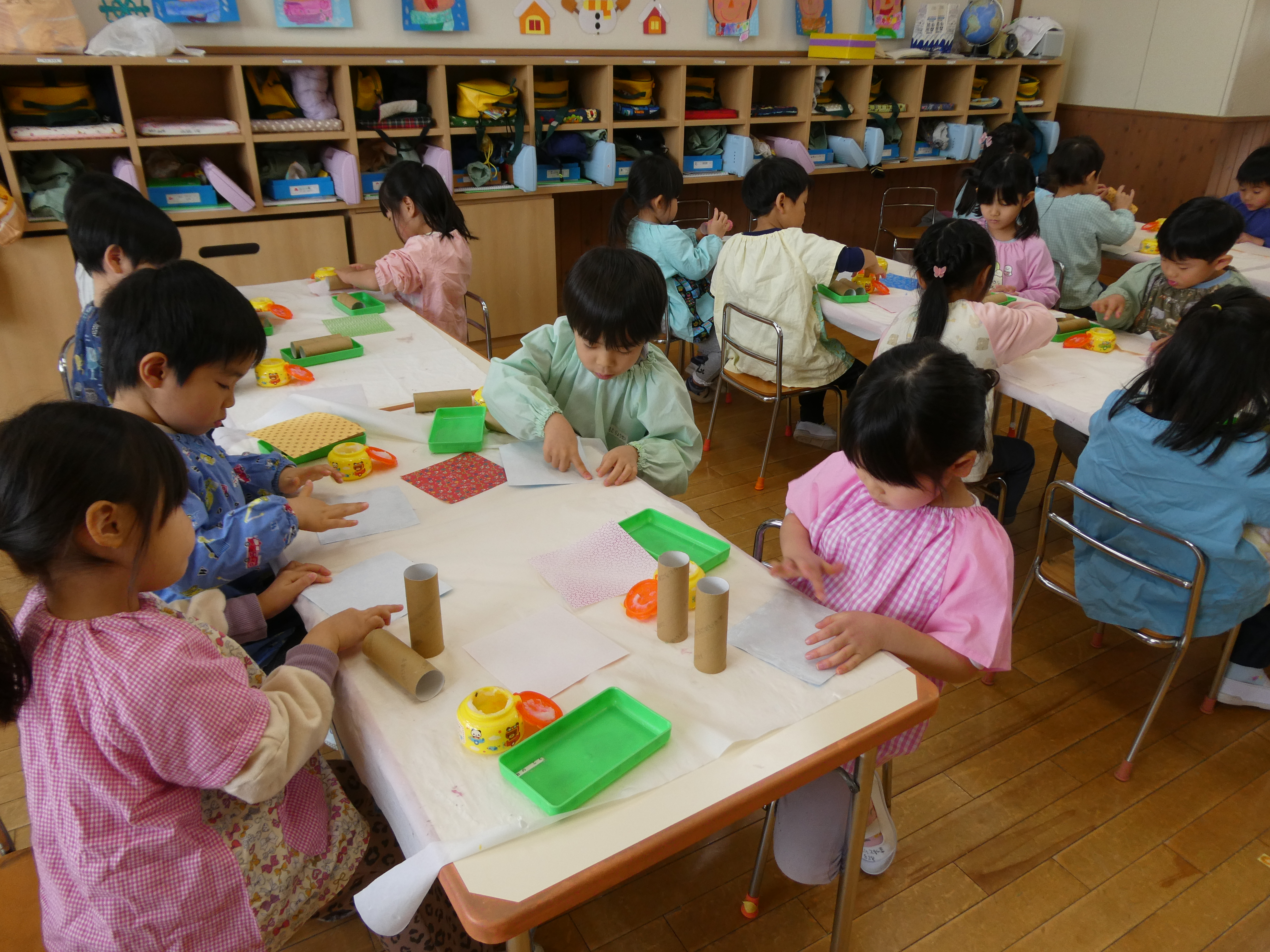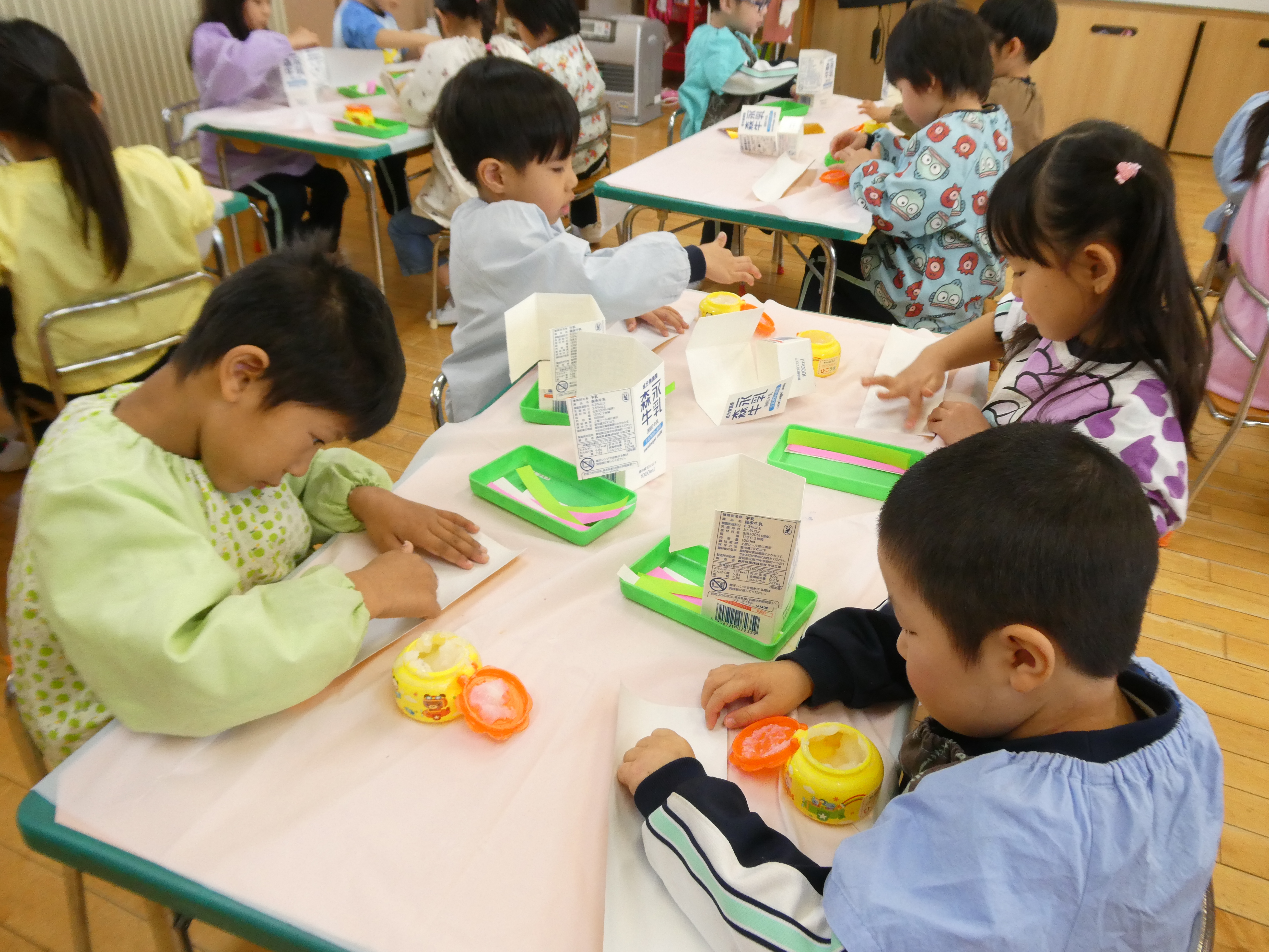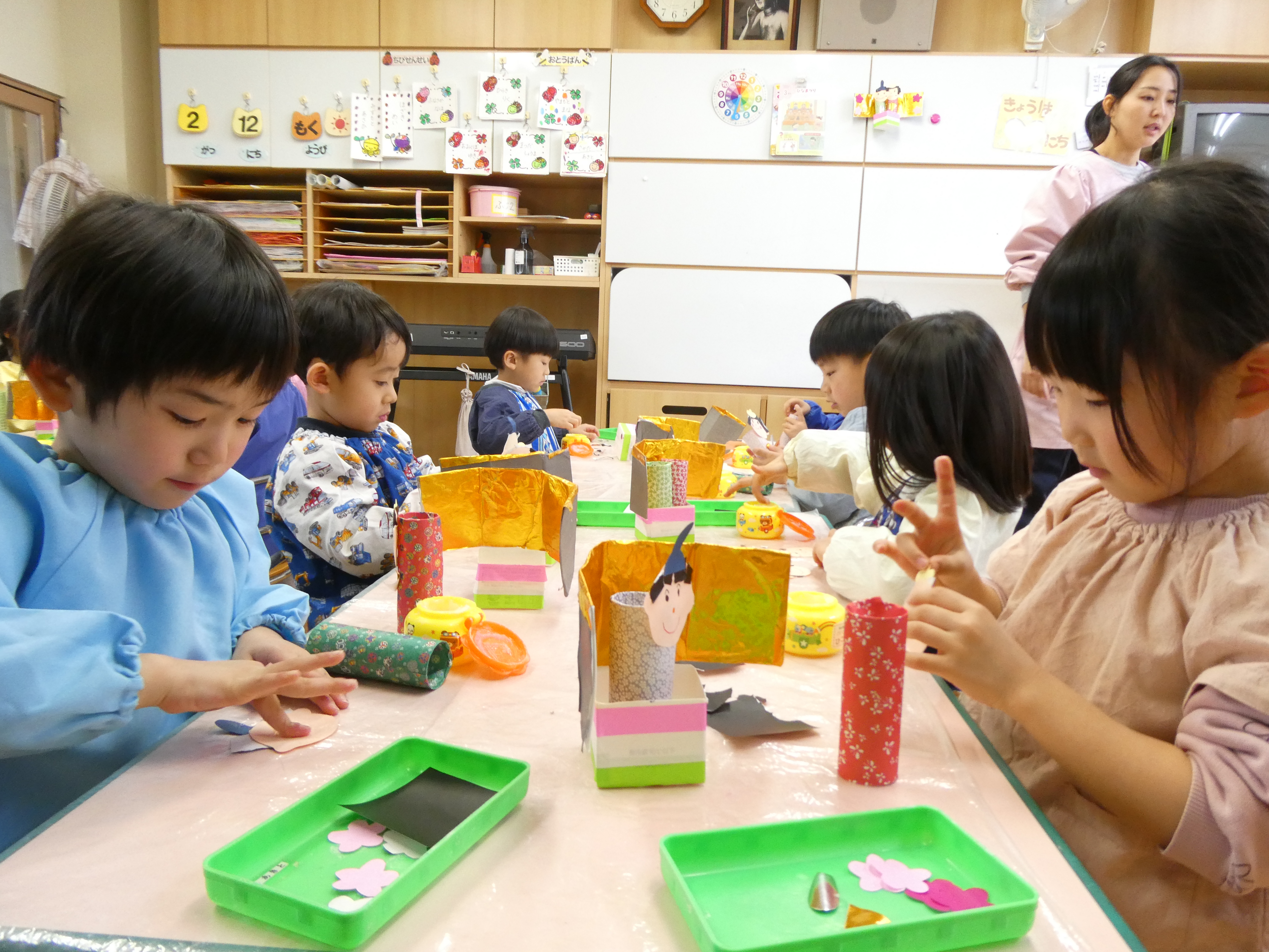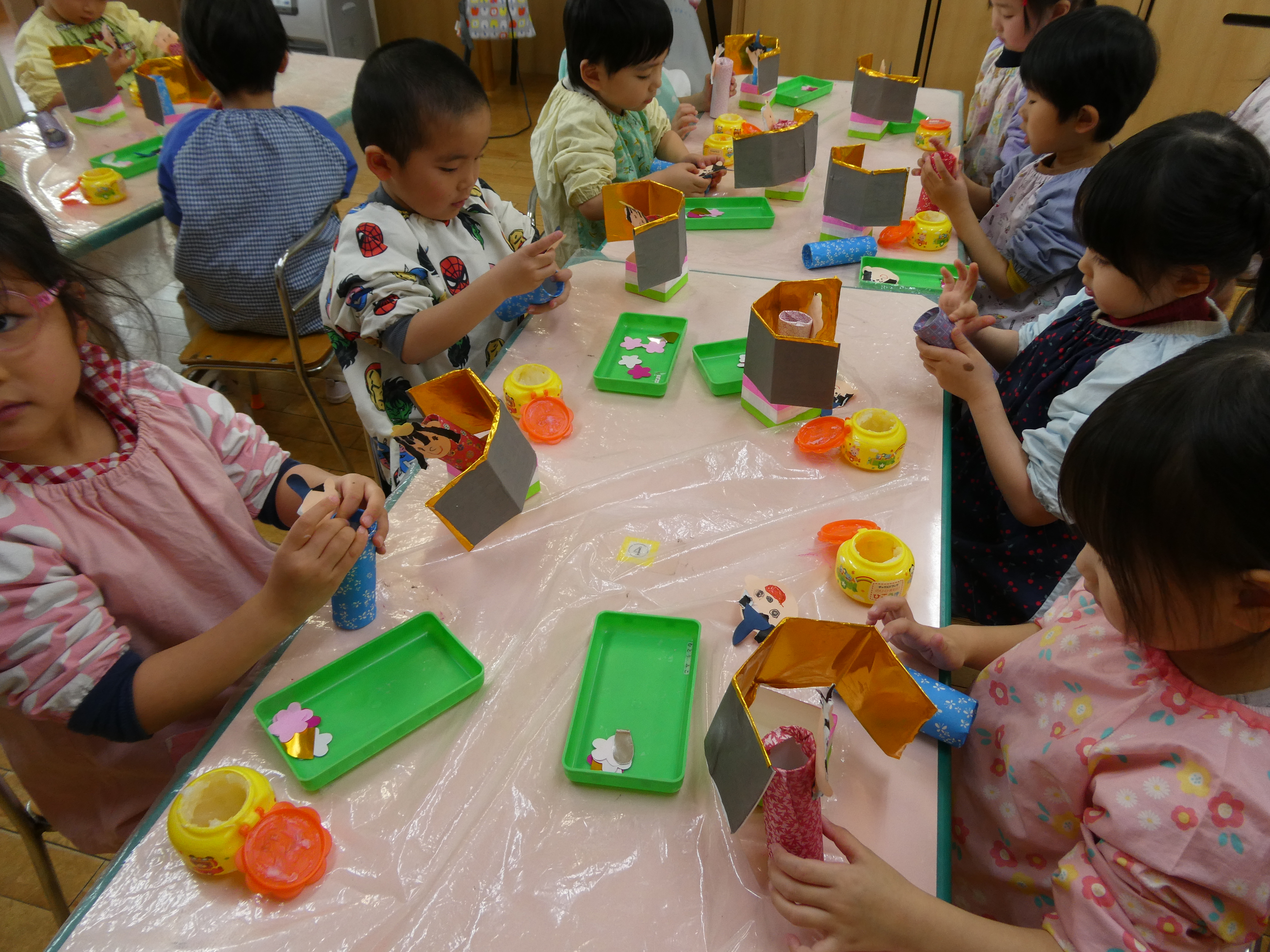 お友達と完成品を見せ合いながら、出来上がったことがとても嬉しそうな様子でした。