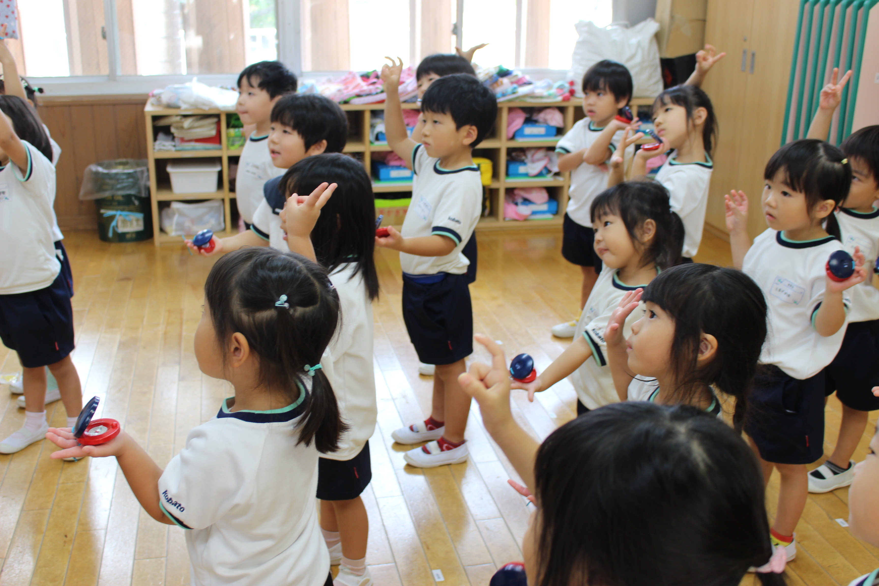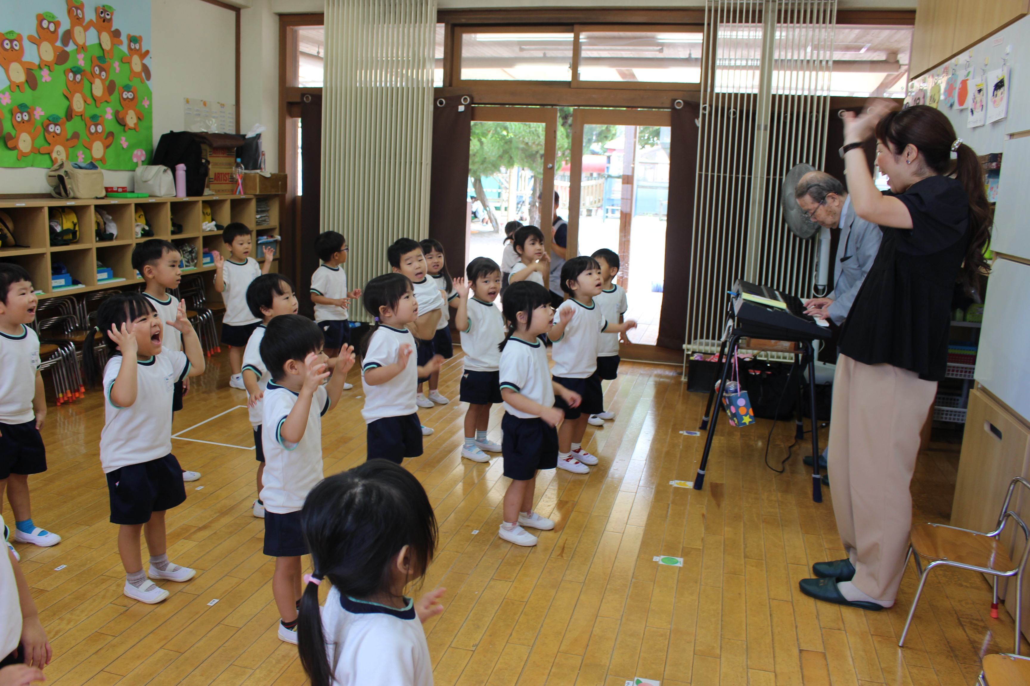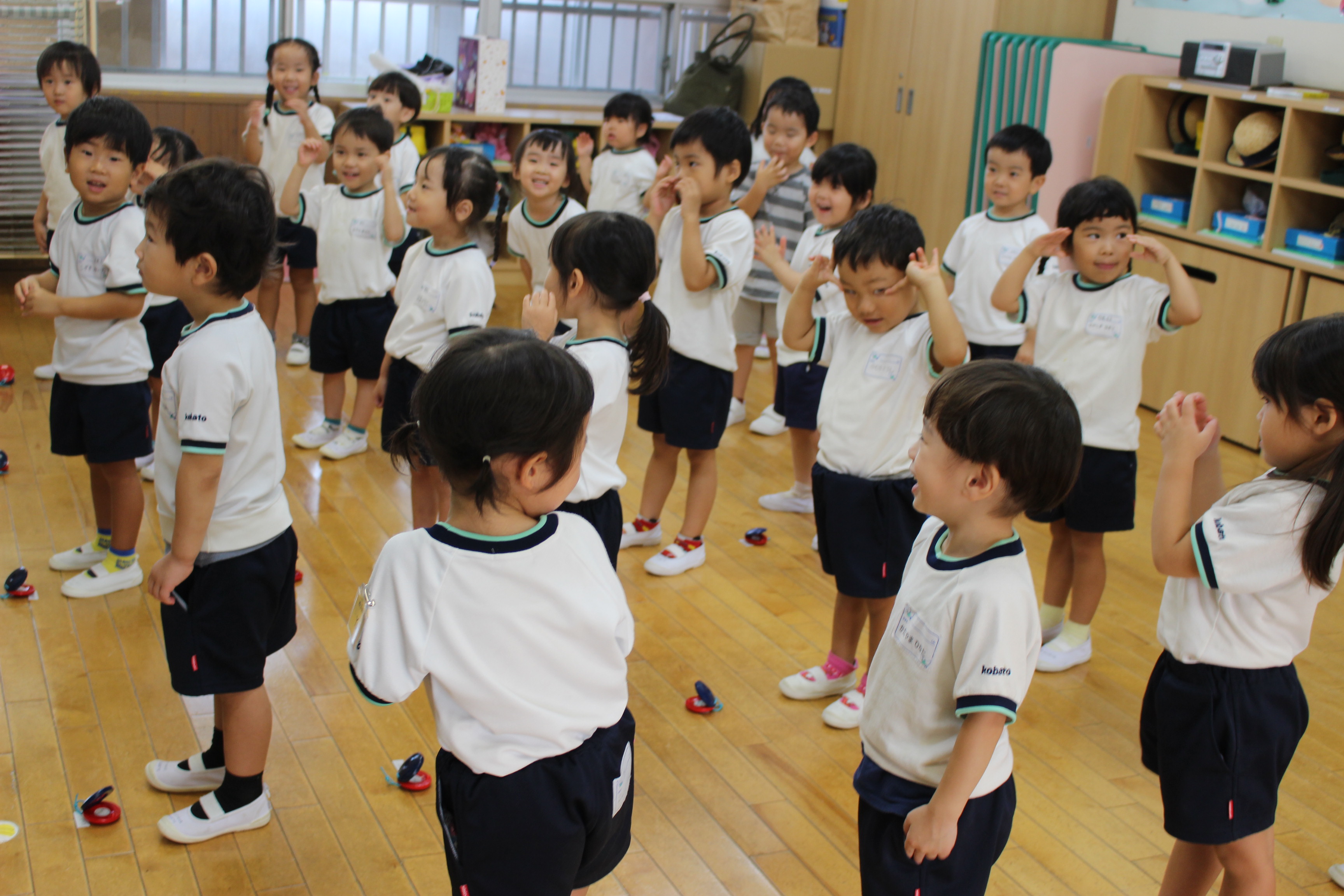 「おとこのこ♪」「おんなのこ♪」などの呼びかけに合わせ、「はあい」と手拍子で返事をしたり、