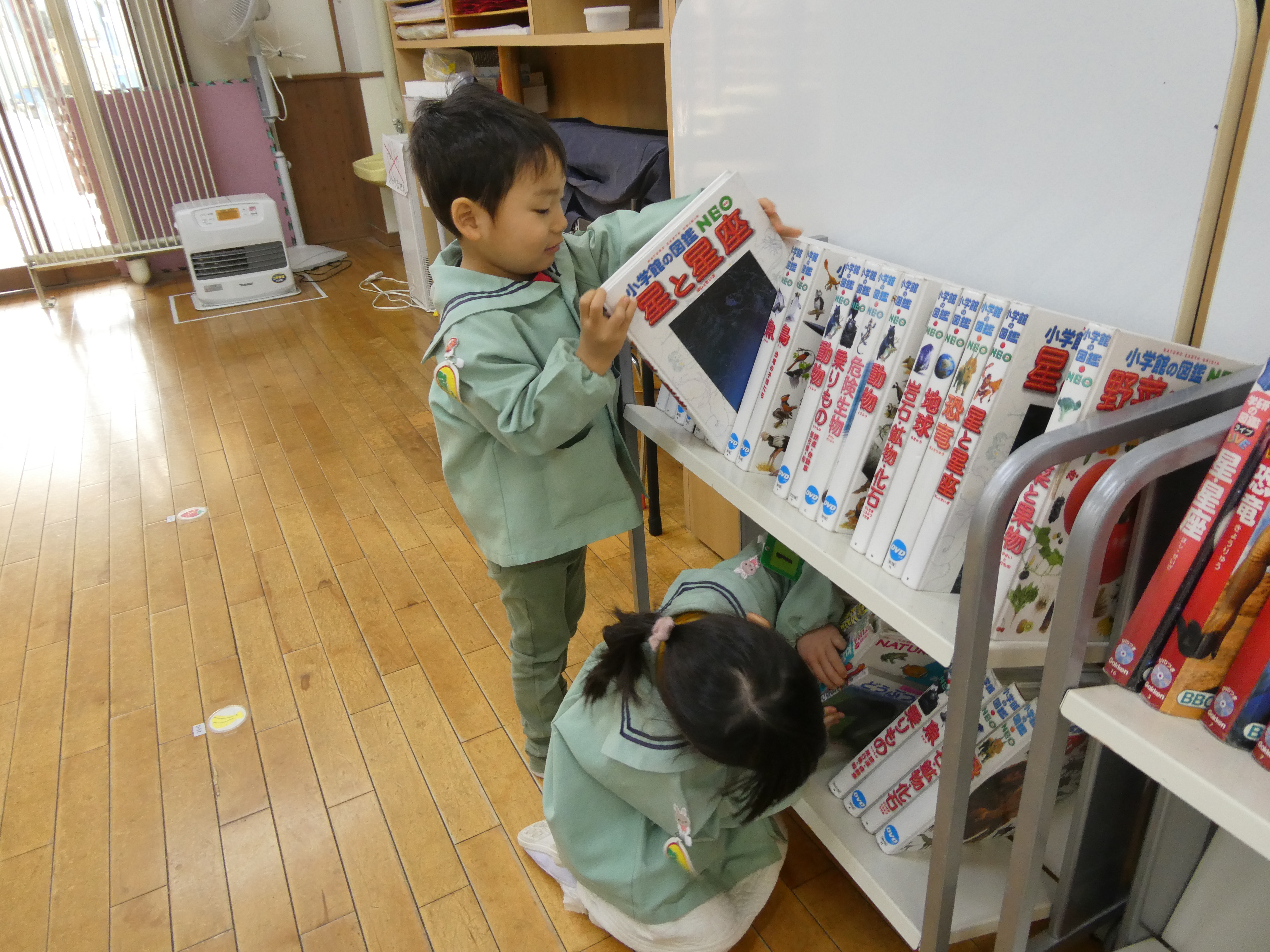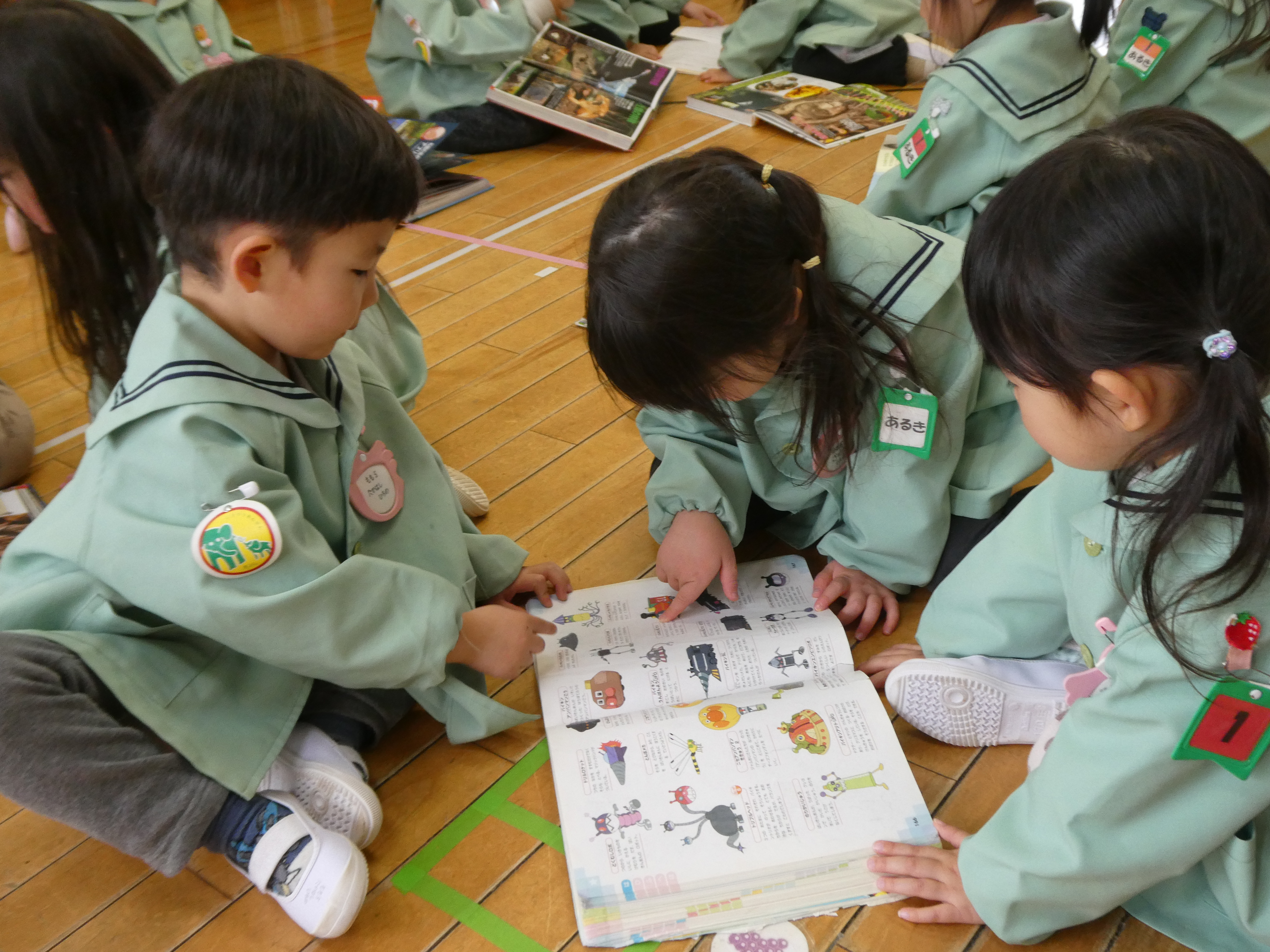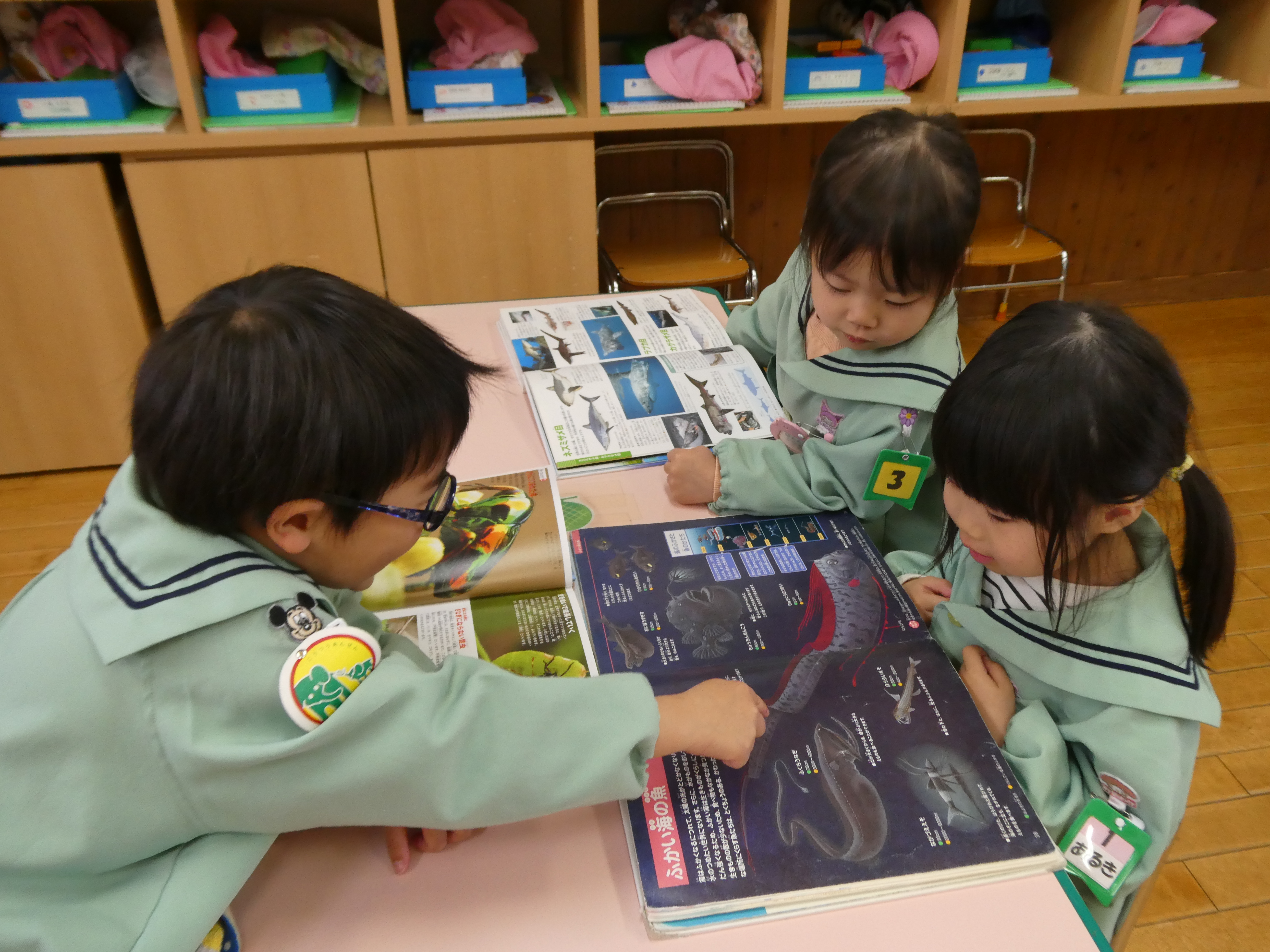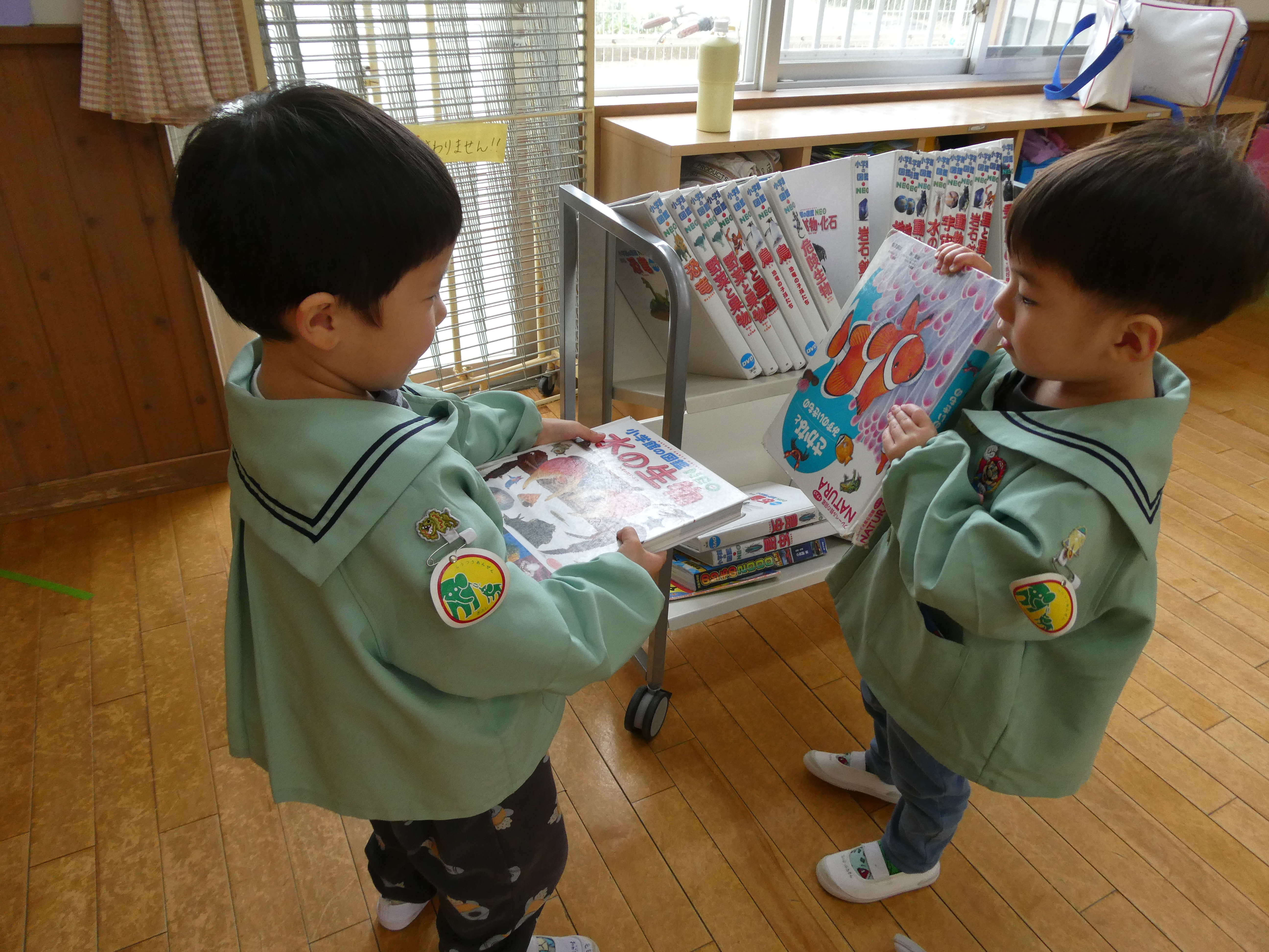 動物や魚や植物などの図鑑を見つけ、「私お花の図鑑にしよう!」「僕は魚の図鑑にする!」
