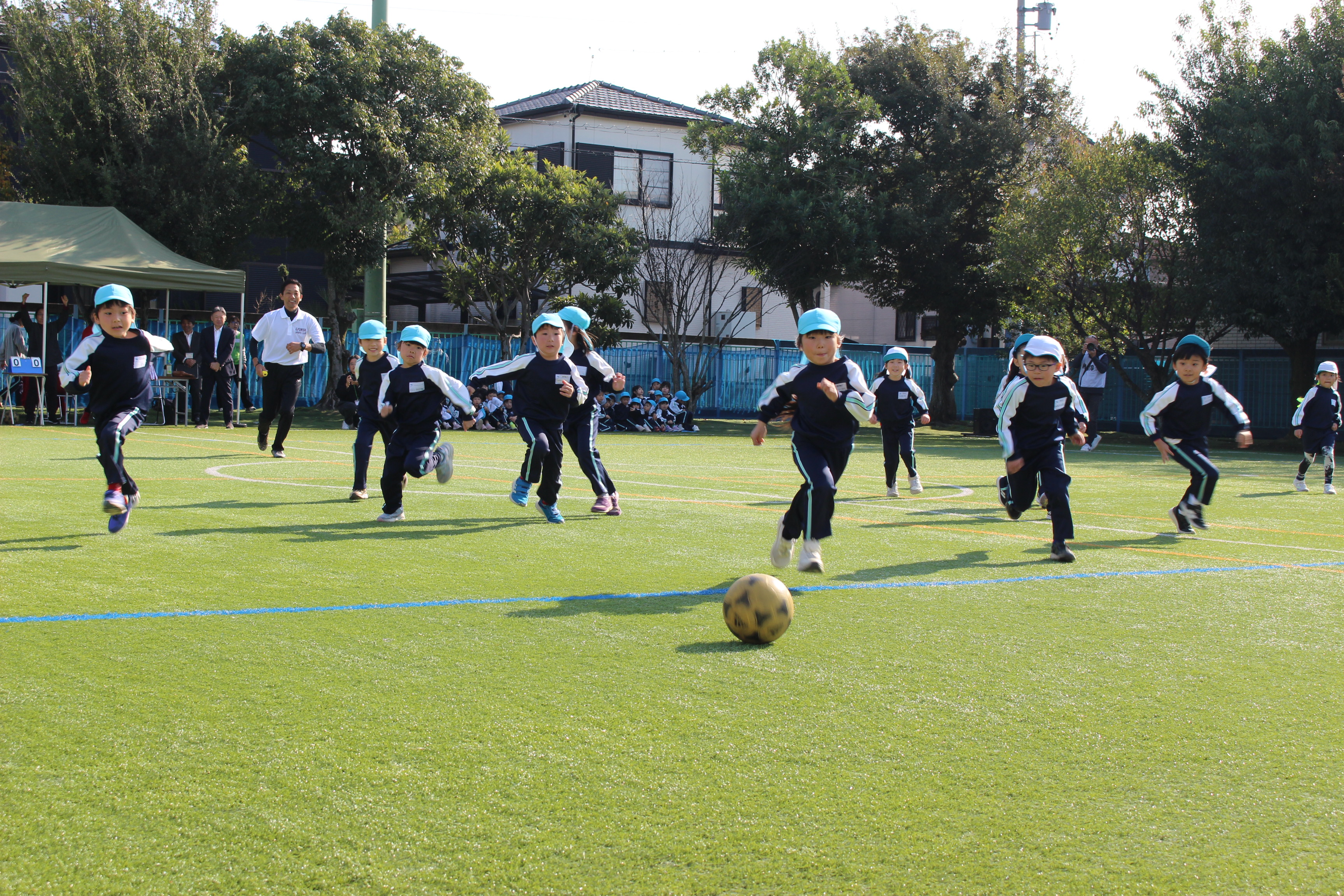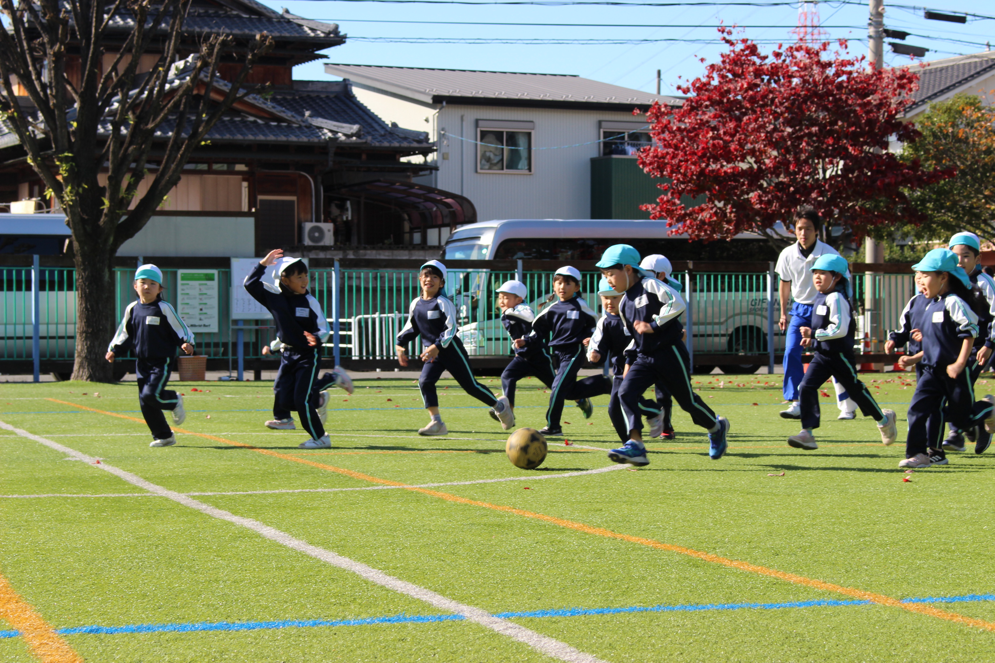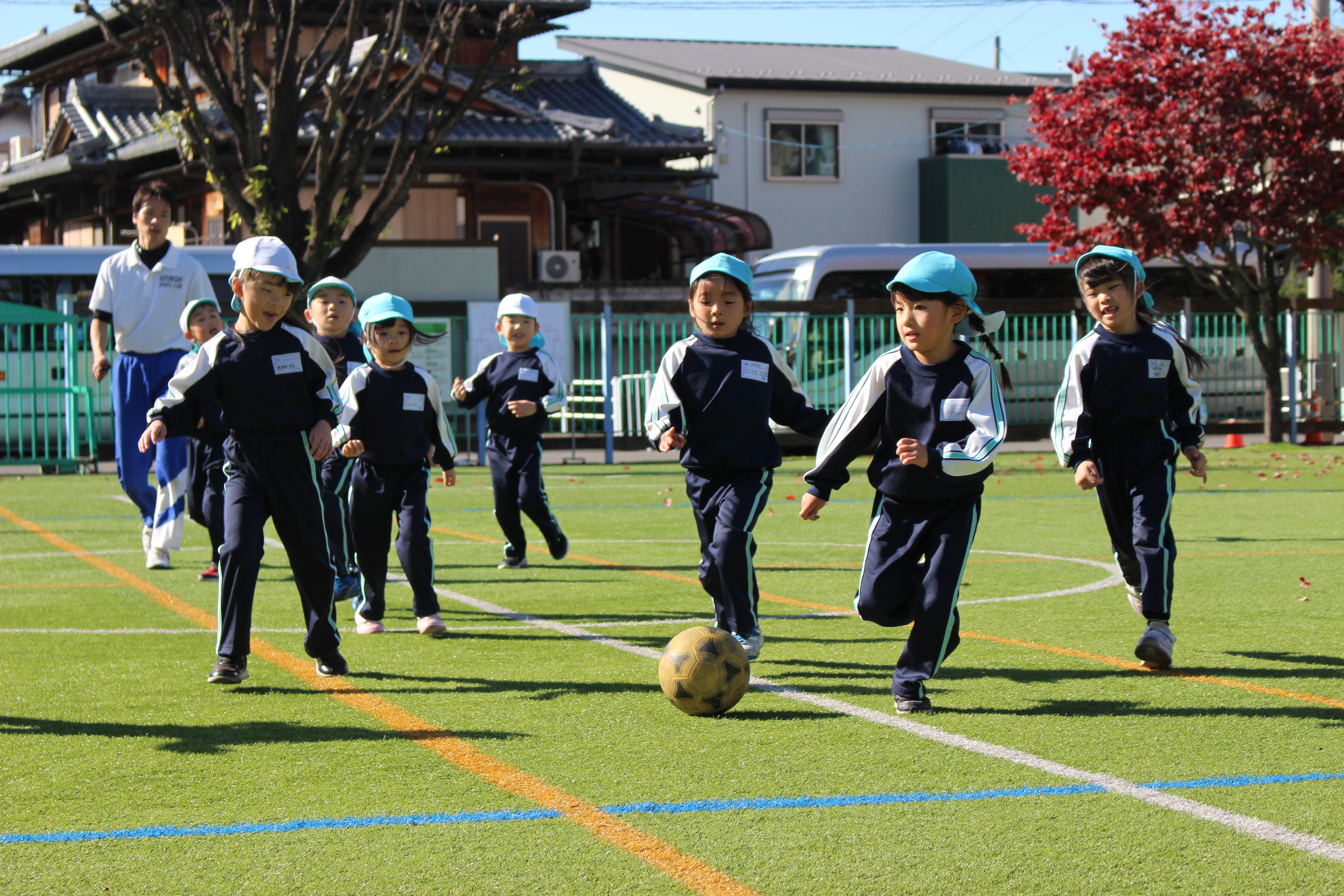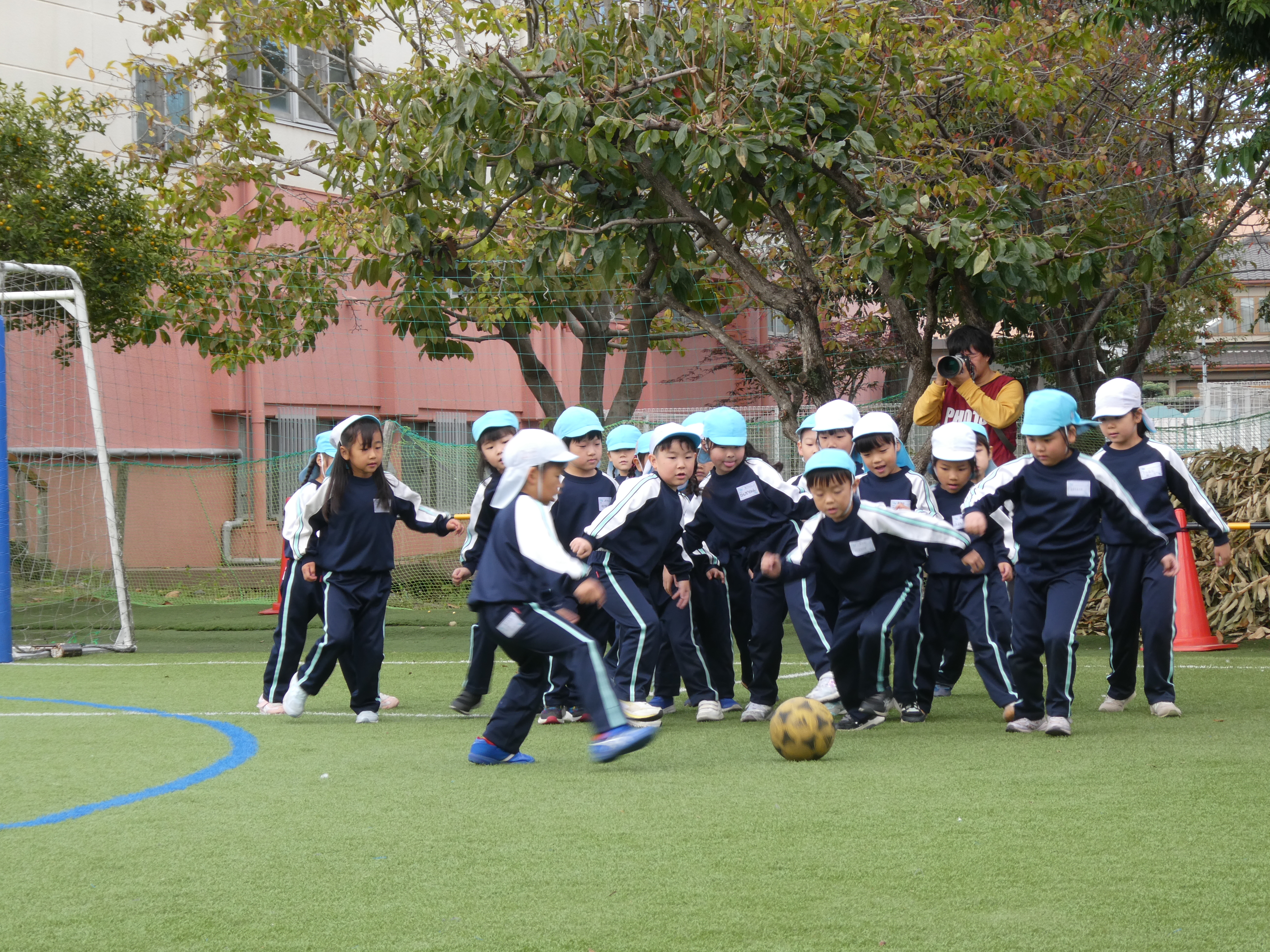 この日の為に、体育遊びや戸外遊びでクラスのみんなでゴールを目指してボールを蹴ったり、