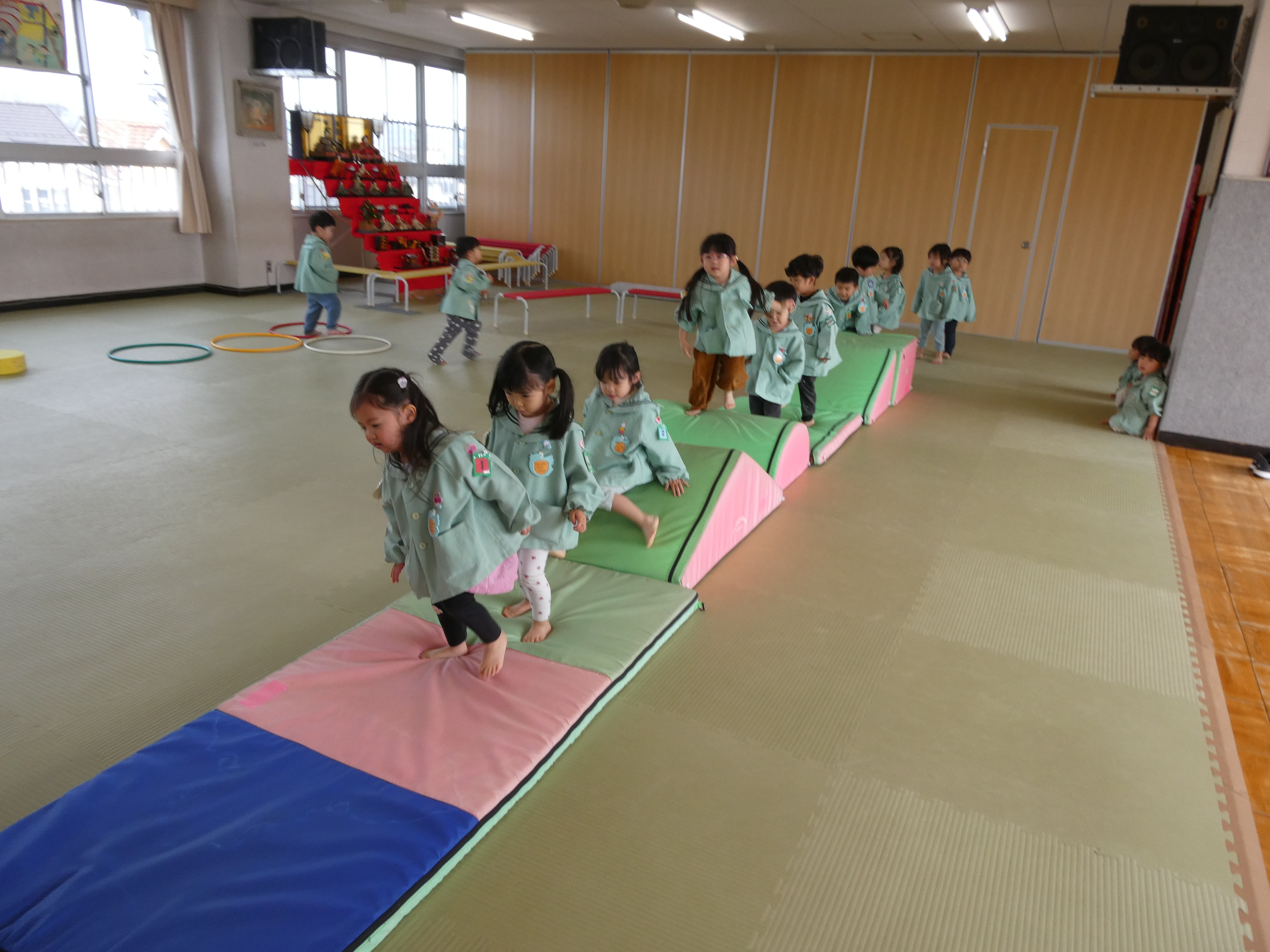 先日、ホールでサーキット遊びをしました。