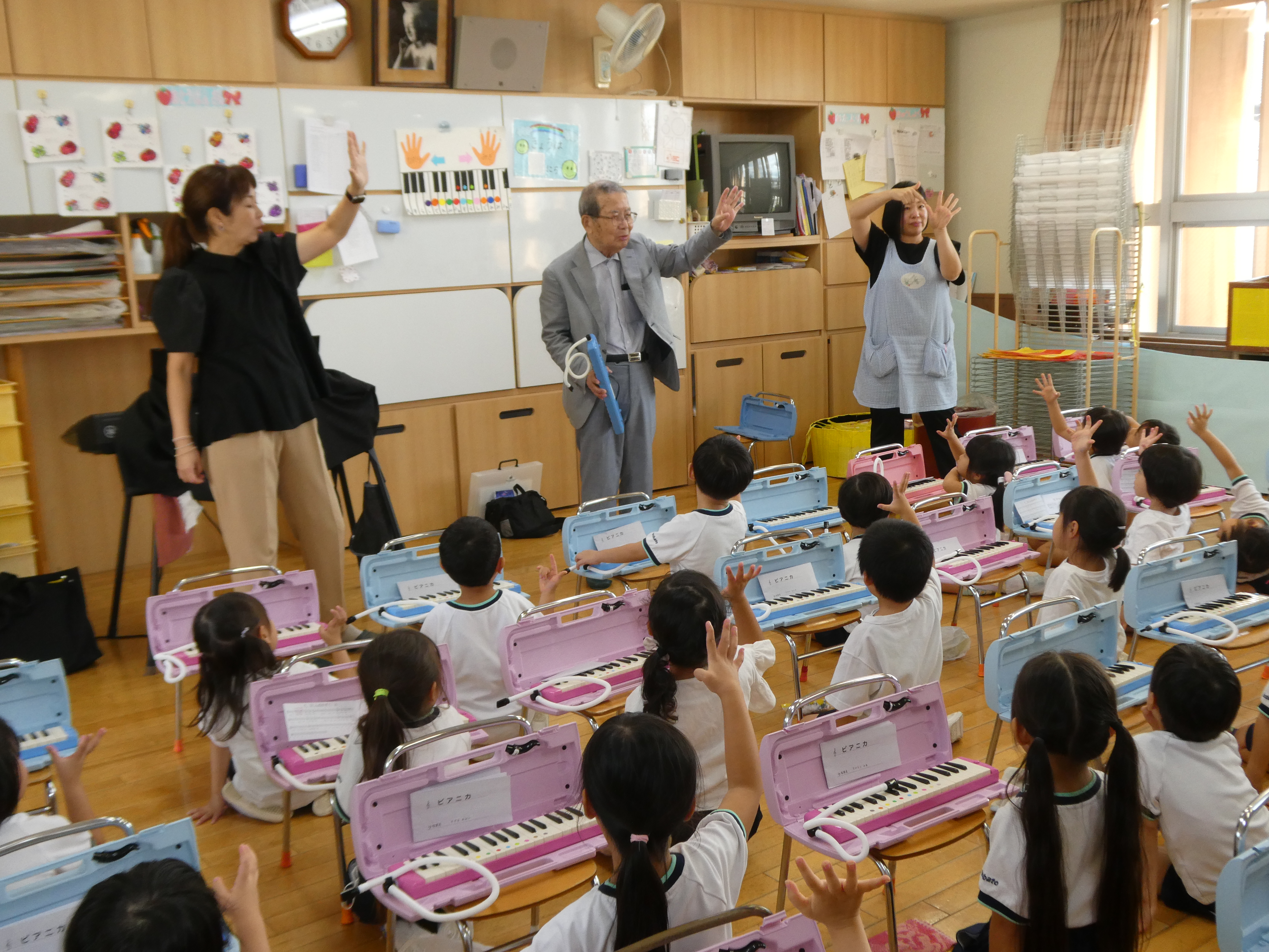 「今日は、ピアニカやるよ~」と伝えると、「やったー!」「何の曲やる~?」と、