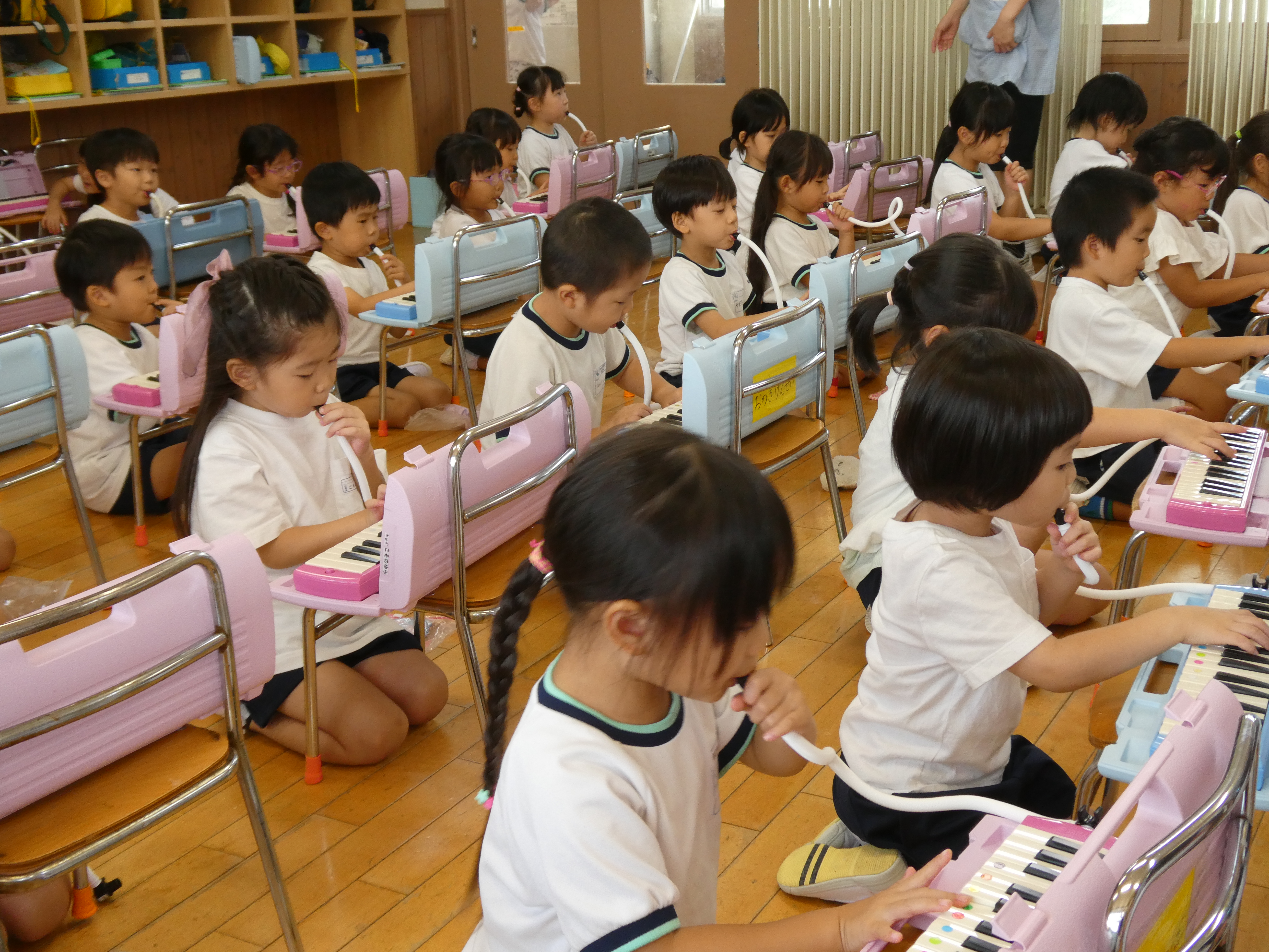 年中組になって新しく始まったピアニカあそび。